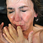 This old broad is 51 years old and is in great physical shape. Her body and work ethic puts to shame any 18-23 year old I've shot with in the past. This is an amazing scene that has everything that you've come to love in a Facial Abuse scene. These guys shove their hard cocks deep in her throat and make her gag so hard that she barfed up whatever old people eat and she got slapped around. She then had her tiny asshole plugged with fat cock. Of course, we made sure she didn't throw out a hip or two but this old hag rocked the fuck out of the scene. After her holes were used and abused, she sat down and a load of cum was dumped on her head. Jizz dripped off of her face, and we sent her packing.